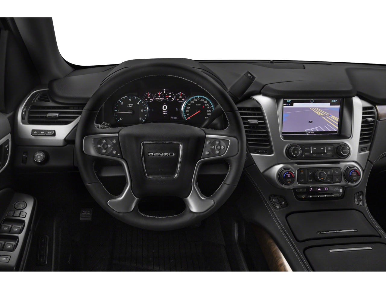 DENALI ULTIMATE PACKAGE includes (PCJ) Open Road Package contents: additional 9 months of SiriusXM Radio and NavTraffic service, (CF5) power sunroof, (U42) rear seat entertainment system, (DNU) third row DVD screen, (UTT) Enhanced Security Package contents: (UTR) self-powered horn, (UTV) interior movement and (UTU) vehicle inclination sensors, (BRS) power-retractable assist steps, (Y66) Adaptive Cruise Control - Advanced with (UGN) Forward Automatic Braking, (JB1) 4-wheel antilock, 4-wheel disc brakes, (SII) 22" bright aluminum wheels with Midnight Silver premium paint and (SFE) wheel locks, LPO, REAR SEAT BLU-RAY/DVD with remote control, overhead display, Wi-Fi wireless projection capability, four 2-channel wireless digital headphones, auxiliary HDMI/MHL audio/video input and 2 USB ports, WHEELS, 22" X 9" (55.9 CM X 22.9) 6-SPOKE CHROME, ENHANCED SECURITY PACKAGE body security content, includes (UTR) self-powered horn, (UTV) interior movement and (UTU) vehicle inclination sensors, door and liftgate lock shields and glass break sensors in rear quarter glass and liftgate window, removes sunglass holder and conversation mirror from overhead console, 8" DIAGONAL COLOR TOUCH SCREEN NAVIGATION WITH GMC INFOTAINMENT SYSTEM AM/FM/SiriusXM stereo with seek-and-scan and digital clock, includes Bluetooth® streaming audio for music and select phones; voice-activated technology for radio and phone; and Shop. Featuring Apple CarPlay® and Android Auto® capability for compatible phone; 5 USB ports and 1 auxiliary jack (STD), 6.2L ECOTEC3 V8 with Active Fuel Management, Direct Injection and Variable Valve Timing, includes aluminum block construction (420 hp [313 kW] @ 5600 rpm, 460 lb-ft of torque [624 N-m] @ 4100 rpm) (STD), 10-SPEED AUTOMATIC electronically controlled with overdrive, tow/haul mode and tap up/tap down shifting (STD). GMC Denali with Pepperdust Metallic exterior and Cocoa/Dark Atmosphere interior features a 8 Cylinder Engine with 420 HP at 5600 RPM*.