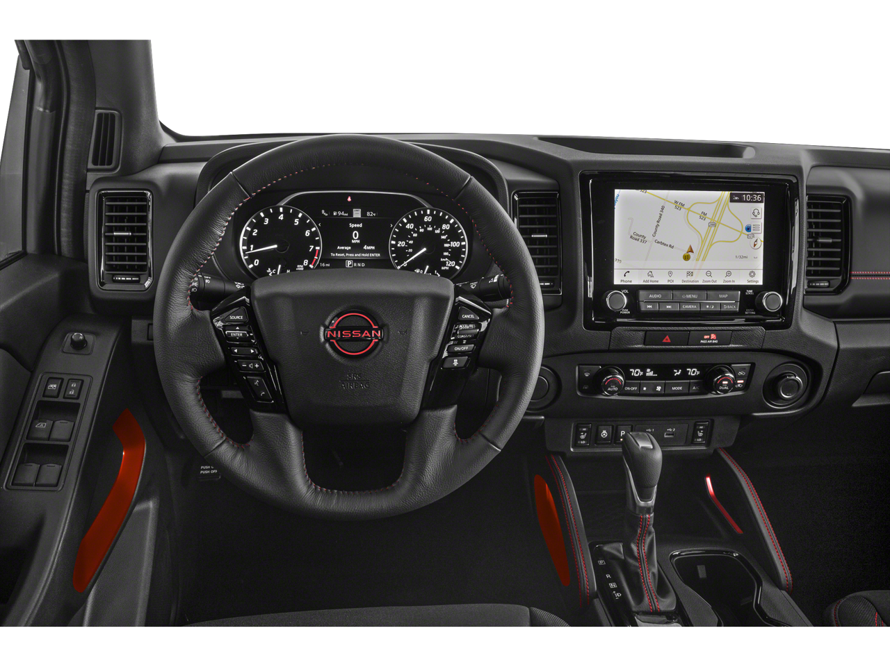 Navigation, 4x4, Aluminum Wheels, Smart Device Integration, Brake Actuated Limited Slip Differential Nissan PRO-4X with Red Alert exterior and Charcoal w/Lava Red Stit interior features a V6 Cylinder Engine with 310 HP at 6400 RPM*.